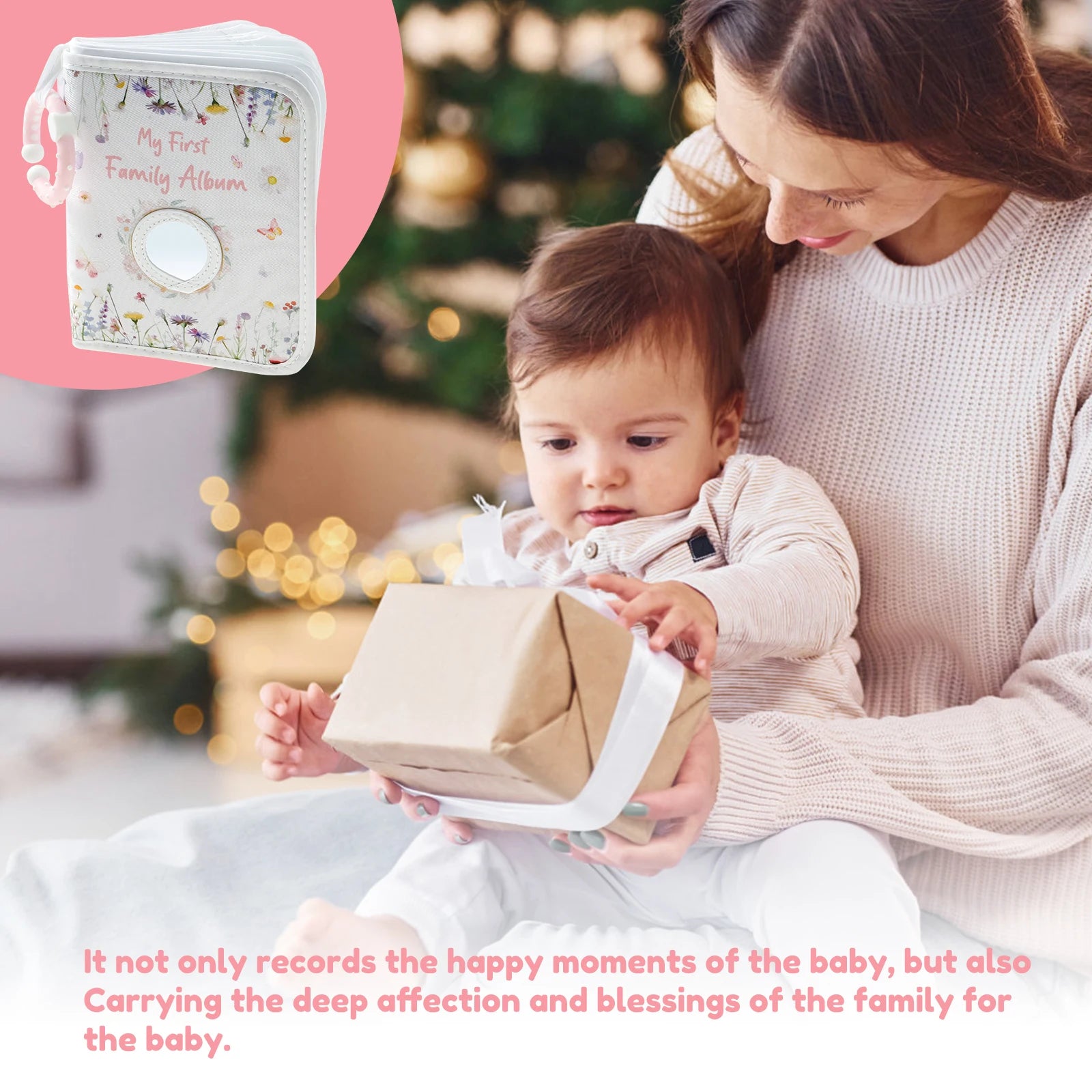 This newborn photo album is made of safe and soft fabric, integrating functions such as portable hanging, a fun safety mirror, large capacity photo storage, and a size suitable for babies to grasp. It is a great commemorative present for recording a baby's growth and carrying love